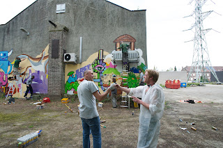 Lastplak-posse from Rotterdam painting for the LAK AAN BRAAK-exhibition at kuS, curated by Jens Besser. (Photo Pascal Moors)
